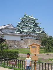 我們在名古屋停留的時間只有一天不到,本來想利用時間好好去百貨公司吹冷氣兼瞎拼,結果前一天晚上百般威脅利誘羅小牛說要帶他去百貨公司買玩具,他就是執意要去參觀名古屋城,即使恐嚇他很熱會中暑他也不怕。怎麼會有7歲小孩這麼愛考古呢?唉!我只好帶他一償心願,媽則一個人爽快的去逛街。