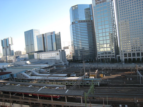 旅館窗外剛好可以看到品川車站繁忙的景象