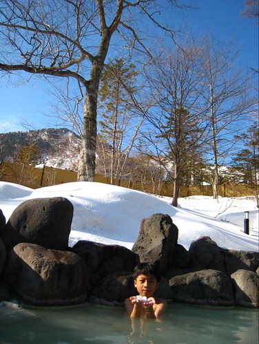 它的露天溫泉池不大,可是充分與週遭大自然融合,彷佛在森林間沐浴著日月精華,泡起來更有味道,我終於一償在雪地溫泉泡湯的宿願,只差沒有漫天飛舞的雪花。