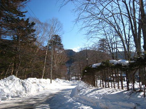 穿過這條積雪道路就會抵達旅館