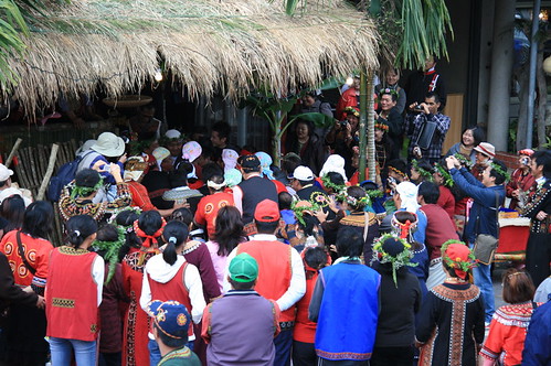 儀式從前一天晚上就開始了,新人雙方家屬和部落長老齊聚在村裏的十八番社前,以傳統歌舞祝福新人。參加聚會必須穿著排灣族服飾,許多未婚男女也盛裝參加,每個人的打扮都非常華麗令人嘆為觀止,頭戴裝飾著羽毛、獵物角牙、花草的帽飾,身穿的傳統服飾以一針一線精心繡製的彩色琉璃珠或繡線勾勒出美麗圖案,而且件件圖樣都不一樣!人人以優雅婆娑的姿態跳著八步瑣鏈舞,一邊引吭高歌。我們雖然無法與他們一起載歌載舞,只能站在一旁沾沾喜氣,依舊可以強烈感受到歡樂的氣氛!