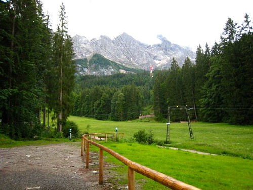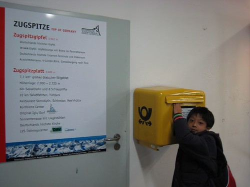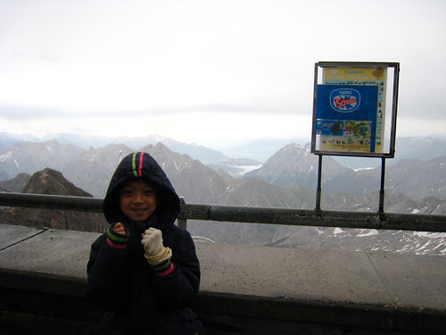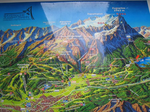 楚格峰標高2962公尺,橫跨德國和奧地利邊境,天氣晴朗的時候,視野的確可以遠達義大利與瑞士。現在登頂的方法比起1820年8月第一支有記錄的登頂隊伍簡單多了,可以花一小時15分先搭乘登山火車(1928年至1930年建造)到終點站,再轉搭纜車4分鐘抵達山頂。或是到距離G.P 15分鐘左右車程,祖格峰山腳海拔1000公尺的Eibsee纜車站,搭乘Eibsee-Seilbahn纜車(1962年建造)約10分鐘上冰河平台,再搭冰河號纜車4分鐘登頂。一般遊客都是去回一段搭火車、一段搭纜車,不過我們遇到惡劣天候,只好開車到Eibsee搭纜車。