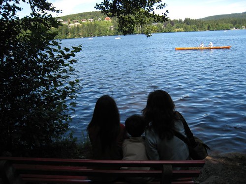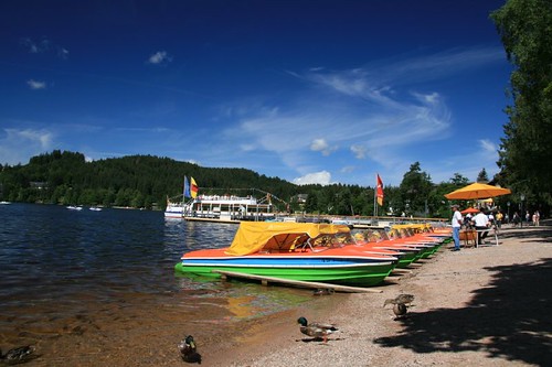 初夏,在海拔850公尺高、水深達40公尺的蒂蒂湖,翠綠山林環抱、繁花盛開,清澈湛藍的湖水散發出令人心神蕩漾的千嬌百媚。我們租了一艘船划行在湖中,波光瀲灩、陽光和煦、微風清涼,周遭蓊鬱黑森林間錯落的可愛房舍與藍天交互輝映,一切的一切交織成一曲美妙的樂章,難怪這裏是黑森林最有名的度假湖區。