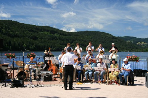 熱鬧Strandbadstrasse街道上的爵士樂演奏