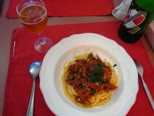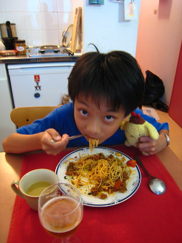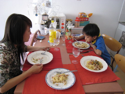 抵達史堡第一天中午,老妹立刻大顯身手端出白酒海鮮義大利麵,