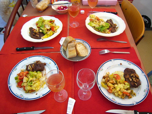 最大好處是可以住在妹妹家,品嘗她精心烹調的法式家常菜。出國念書前只擅長做甜點的妹妹,到了號稱美食國度的法國,廚藝果然不同凡響。怎麼說呢,留學生既要認真念書(?)又要打理三餐,所以煮飯一定要快狠準。我們每天早出晚歸回家已經累癱在床上,她卻可以立刻衝到宿舍旁的超市採買、火速煮出美味豐盛晚餐供大家享用,令我們訝異不已。她說其實只要食材新鮮,加點香料就可以提升食材蘊含的自然鮮味、創造出口感佳營養足又快速的料理。而且用餐時一點也不馬虎喔,精緻餐具搭配美酒、法國麵包,再來一點音樂,就像在西餐廳用餐呢!