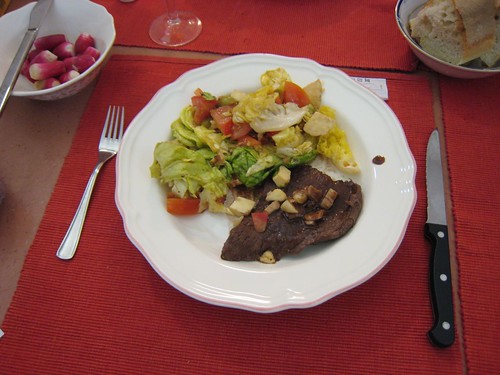 左邊那小碗是用來生吃的Radis(小紅皮白蘿蔔),吃時將Radis灑一點鹽,撕一小塊法國麵包塗上奶油配著吃