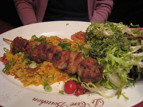 烤豬肉串配米飯,吃起來有淡淡酒香氣