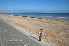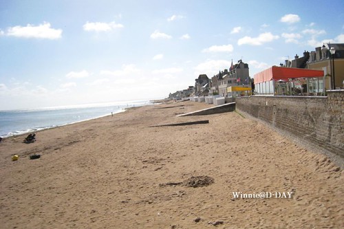 由於每一條參觀路線涵蓋面積很廣,我們沒有時間整條看完,就從康城出發,由東往西沿著海邊尋訪五個搶灘點。當年風聲鶴唳的登陸海岸線,重建了一排排很「美式」的現代房舍,有的人慢跑、有的人散步,走在其間,充滿加州海灘般悠閒氛圍,和鄰近城鎮截然不同。雖然表面上時光似乎沖淡了一切,風中已經嗅不出當年的腥風血雨,但是沿途一座座海鷗圖像立牌清楚記載6 月6 日當下發生的事,以及一間間戰爭博物館展示陣亡將士遺物、隨處可見的紀念碑下泛黃黑白照與花圈、砲台、戰壕,還有好幾處遼闊的陣亡將士墓園,還是會讓人心頭湧現一股悲淒。