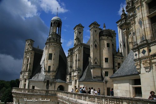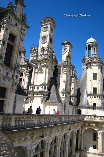整座城堡最令我難忘的地方是塔頂大露臺,此起彼落的高塔結合了火焰式歌德建築和義大利文藝復興風格,優美綺麗的造型形成相當動人的天際線。放眼望去,一望無際的草原森林,江山如畫,一時多少豪傑。遙想著弗朗索瓦一世馳騁狩獵的英勇氣勢,真有滄海一粟的感嘆啊。不論多麼不可ㄧ世的王親貴族,終究會灰飛煙滅。曾經被人遺忘許久的香波堡,反而默默見證數百年皇室興衰後,成為最受歡迎城堡,連帶的,弗朗索瓦一世靠它才不致於在歷史的洪流中被輕易淡忘。到底是國王造就了城堡?還是城堡成就了國王?