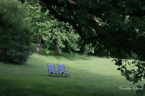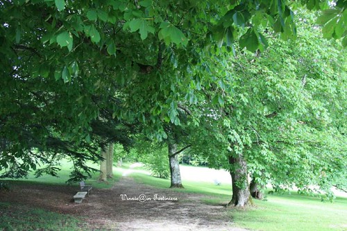 最吸引人的還是廣闊的庭園與蓊鬱森林,漫步其中,腦海裏立刻浮現電影電視常常有的貴族仕女身穿華服,手撐一把蕾絲傘搖曳生姿的在草地上踱步的景象,庭園與森林是法國城堡的標準配備,也最能感受到城堡生活的浪漫優閒。沐浴在和煦的陽光下,我們坐在草地上看書、或是到森林裏閒逛,旅行多天的疲累緊張得到舒展,充分享受這一生可能只有一次的難得經驗。唉!古今中外皆然,畢竟家裏要有這樣大院子都是貴族富豪專屬的,我們這種平民老百姓只能趁這時候用照片記錄這一切的美好。