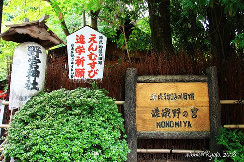 野宮神社,有著美麗六條妃子愛光源氏發狂變成生靈的怨;以及荳蔻年華的齋王,礙於身分必須六根清淨斬斷情絲的無奈。
