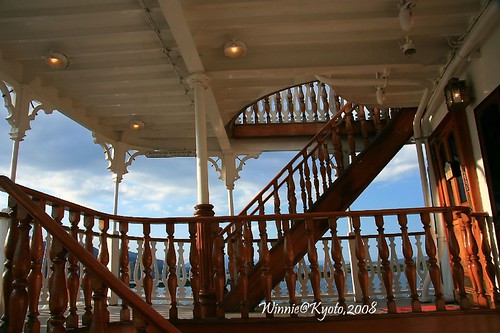 那仿古樓梯看起來有一點像鐵達尼號上面那樣的樓梯,要穿像西部拓荒時代那種澎澎裙才配,不過我還是覺得琵琶湖用日本古帆船然後穿和服比較棒啦! Winnie 於 2008/10/19 22:37 回覆