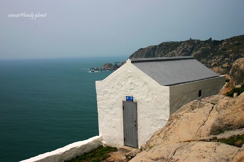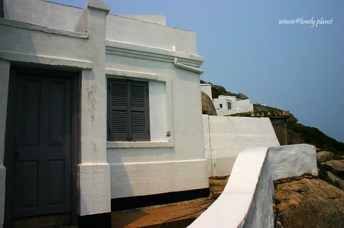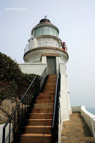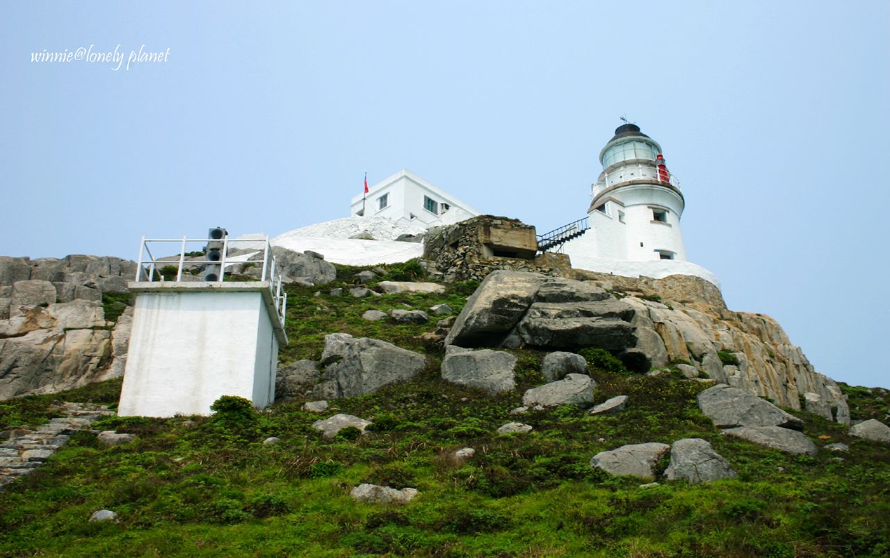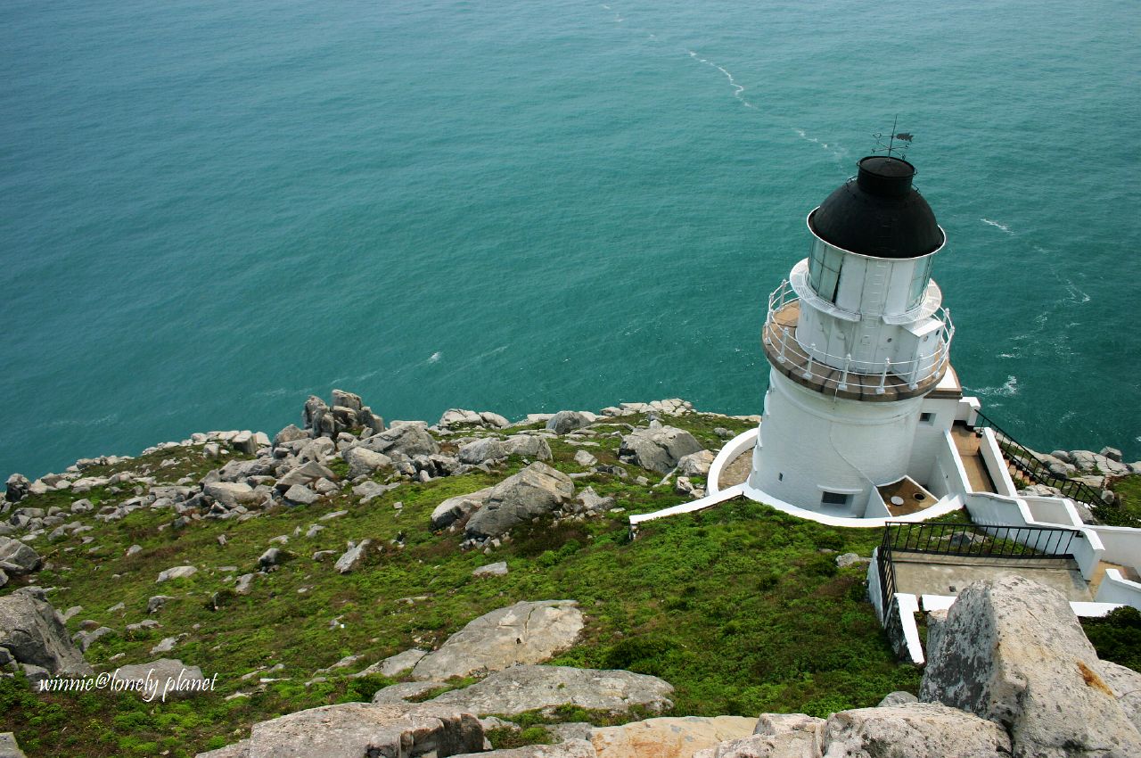 英國人設計、監造的燈塔有著雪白醒目圓柱形塔身,造型典雅復古,散發濃濃的歐式風情。燈塔後方還有幾棟白牆藍門的精巧房舍,建築之間,以曲折蜿蜒的石階相連拾階而上。很多人說這裡有地中海的浪漫,我卻覺得它的魅力更獨特,是在時間長河中孑然一身淬煉出的滄桑之美。