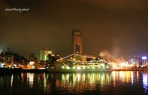 從臺馬輪欣賞基隆港夜景,畫面那艘是麗星郵輪