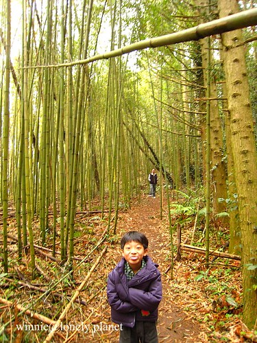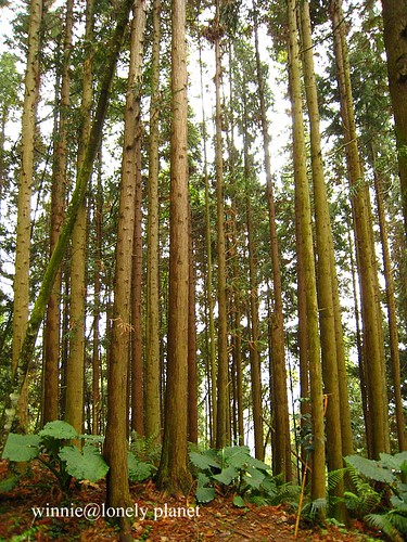 第二天老闆建議我們去二本松步道,名聞遐邇的二本松步道,屬於雪霸國家公園雪見遊憩區北坑溪古道其中一段,海拔約1320公尺。剛開始兩側長滿濃密桂竹林,腳底踩著厚厚枯黃竹葉,散發空山不見人但聞人語響的幽靜空靈。再往前走,進入茂密杉木林,數量可觀的巨大樹幹筆直伸向天際,相當原始壯觀。