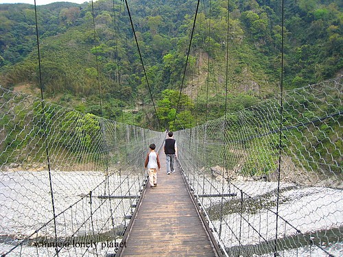 橫跨大安溪的象鼻吊橋建於日據時代,歷史悠久