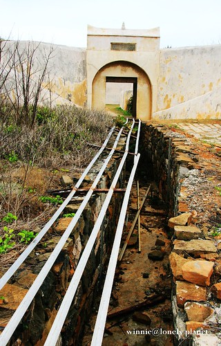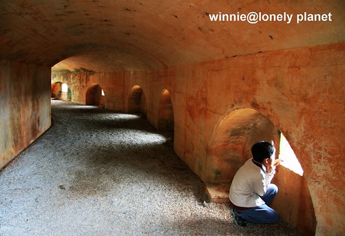 沿著山腳簇新的木棧道往上爬,大約15分鐘就可以輕鬆攻頂。砲台內有壕溝遺跡、防空洞、還有關犯人的小監禁室,保存相當完整。
