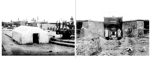 老照片比一 比,左:日軍占領西嶼西砲台;右:昔日的西嶼東砲台