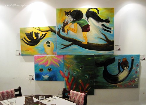 餐廳規劃許多留白的牆面,讓藝術家們來這裡辦展覽藝文展作品