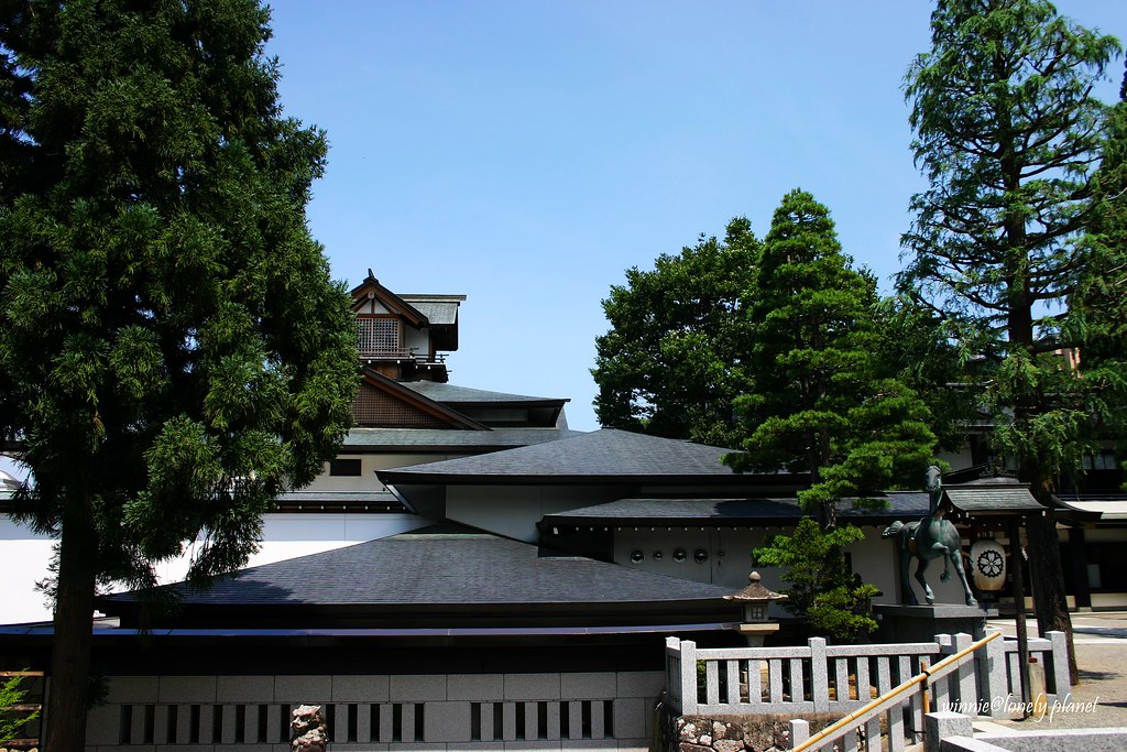 西元1588年,城主金森長近從白川鄉將照蓮寺遷建到高山城址,據說是日本淨土真宗寺院中最古老的一座寺院,裏面有飛驒地區最古老的梵鐘。我們抵達時,正響起陣陣鐘鳴,鐘聲渾厚悠揚,駐足聆聽,暑熱帶來的煩躁竟然都隨著鐘聲遠颺呢。