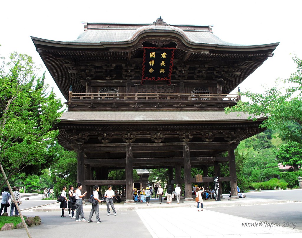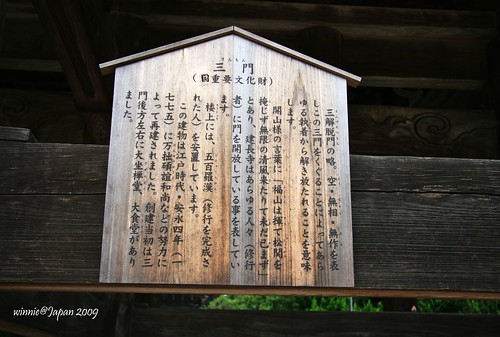 巨大的三門上匾額據傳是後深草天皇所提,不過也有說是宋朝僧侶寫的