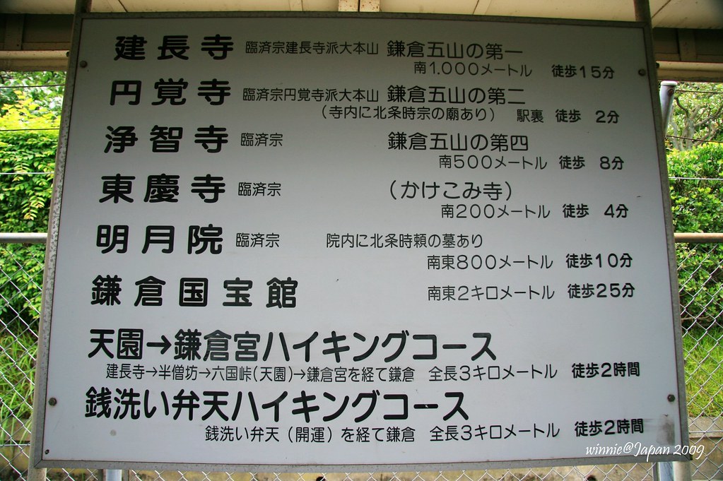 北鎌倉站一下車就可以看到告示牌清楚寫著各寺院腳程