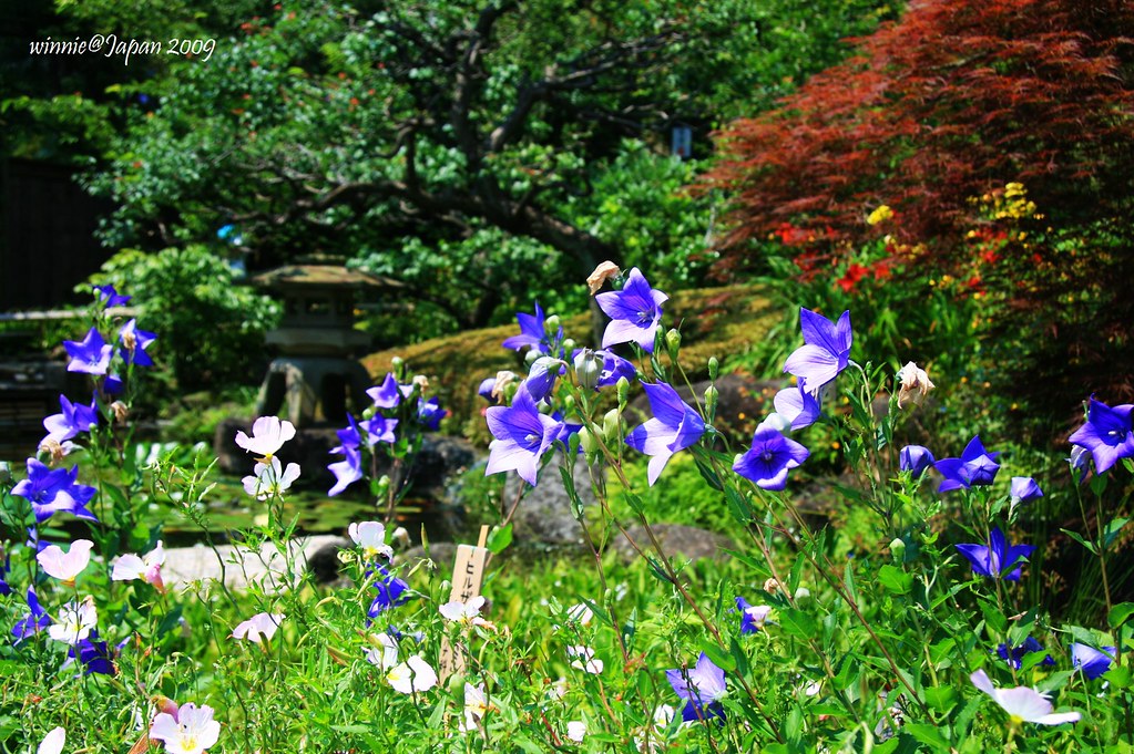 盛開的桔梗等各種花朵將庭園妝點得美不勝收