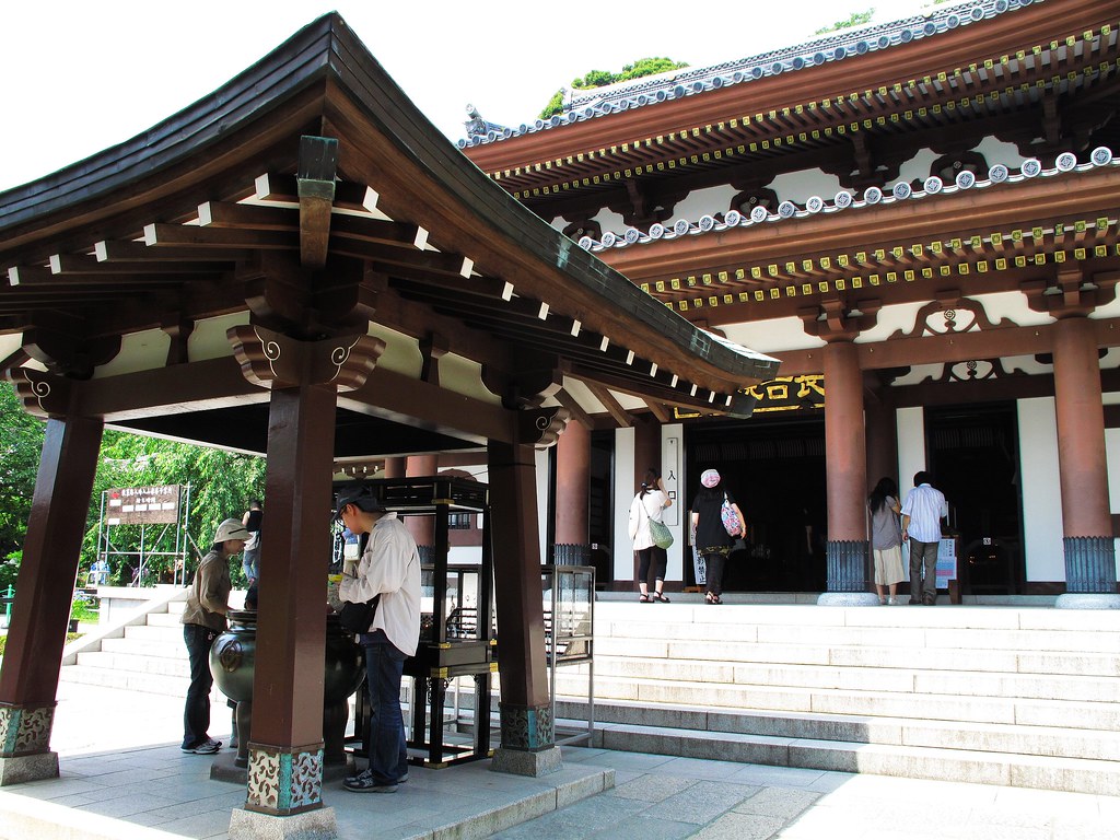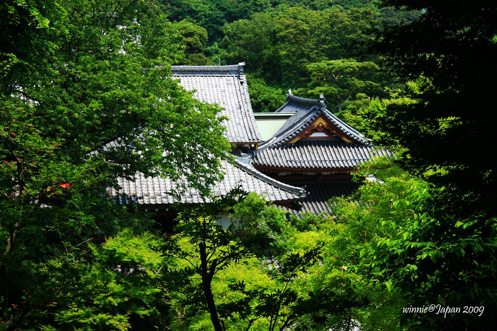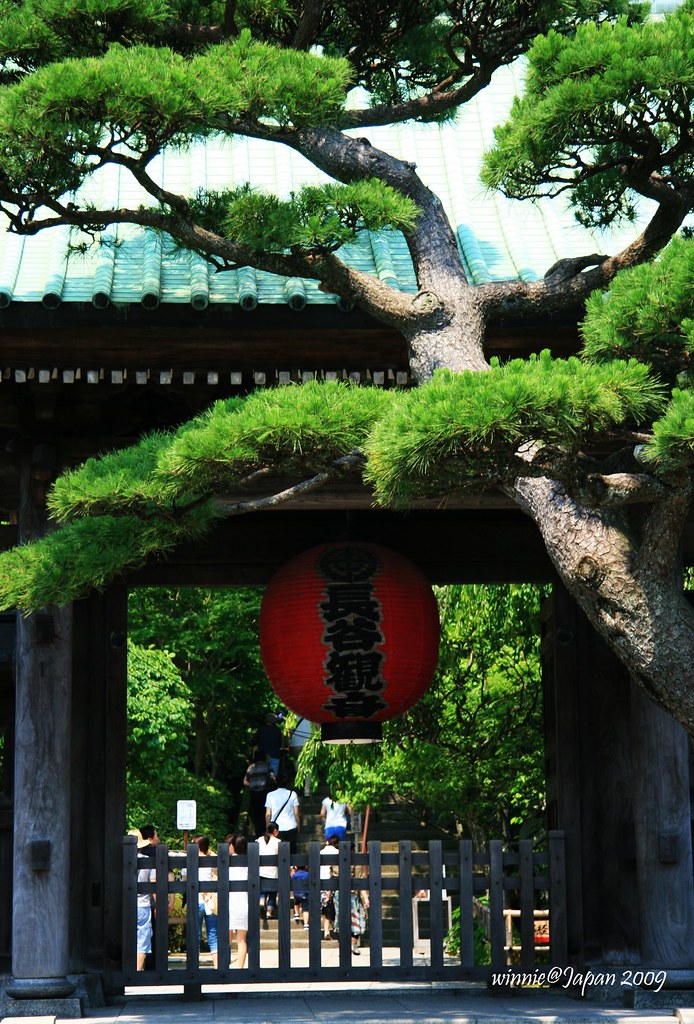 長谷寺依山而建,分為上境內與下境內。欣賞完下境內的庭園,拾級而上來到高處的上境內,奉祀本尊的觀音堂和阿彌陀堂等伽藍一直線排列。長谷寺的本尊可大有來頭,高達9.18公尺的國寶級觀音像,是日本現存歷史最久、最大的木造觀音像。傳說在西元721年,德道上人依照夢裏啟示刻了兩座十一面巨大觀音像,一座供奉在奈良長谷寺,一座放入海中任其漂流,結果飄到鎌倉長谷附近海邊,後來就在此地建長谷觀音寺。聽起來雖然很玄,不過長谷觀音寺自此香火鼎盛是不爭的事實。而且奈良的那尊觀音像遇大火焚毀,現存的是室町時代(1538)再建,雖然有10.18公尺,不過論年代,還是鎌倉長谷寺的比較古老。