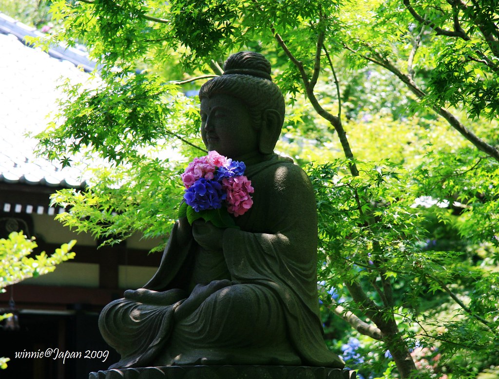 第一張的佛像拿著紫陽花真有趣,