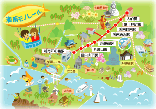 湘南モノレール一般翻譯成湘南單軌電車,是懸吊式單軌列車。也就是說它不是走在軌道上,而是倒吊在位於上方的軌道下。1971年全線開通,連接江ノ島到大船之間,全長只有6.6公里8個車站 , 最高速度75km。