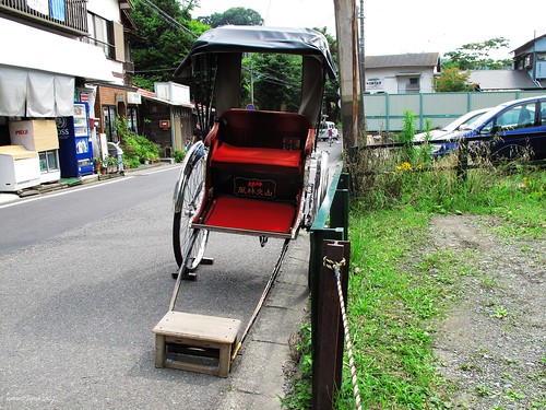 極樂寺車站前有人力觀光車,「風林火山」字樣頗吸引人