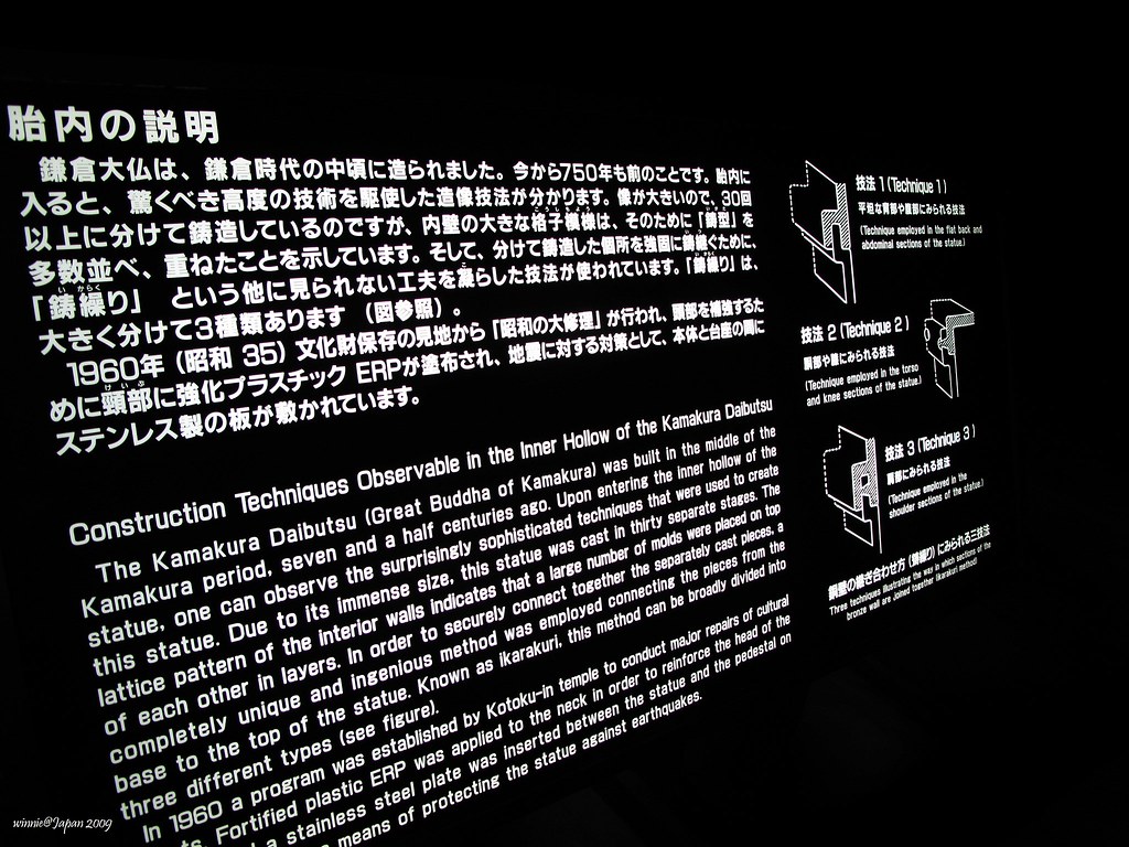 付日幣20元就可以進入佛像內參觀,這是裡面解說佛像內部構造的燈箱