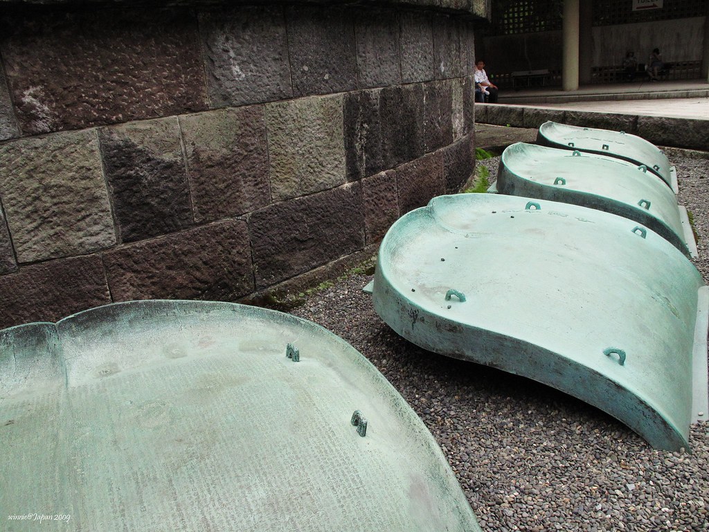 在大佛像背後地上有4大片青銅製蓮瓣,原來這些是江戶中期製造蓮花台座的時候,
