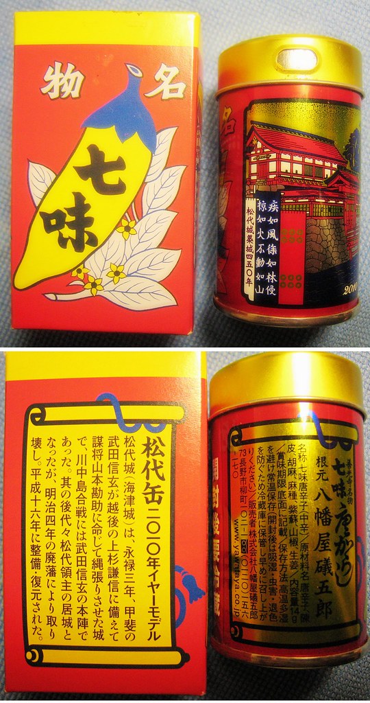 七味粉是日本料理一種以辣椒為主材料的調味料,由七種不同顏色的調味料配製而成。所以是粉狀的,其實不太辣,很香~~ Winnie 於 2010/06/24 19:01 回覆