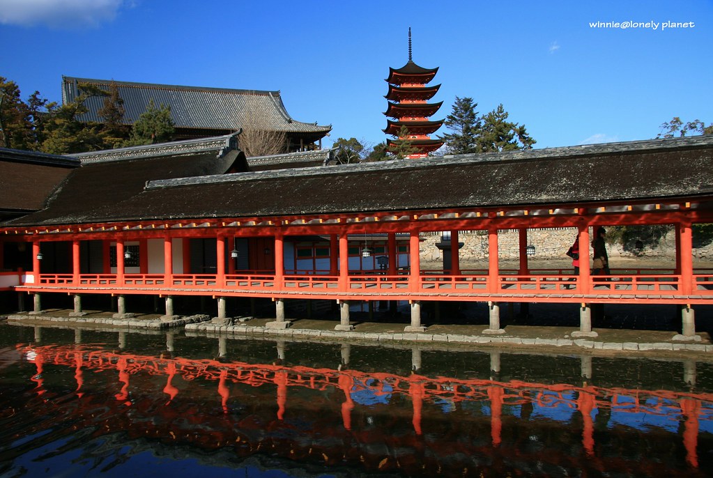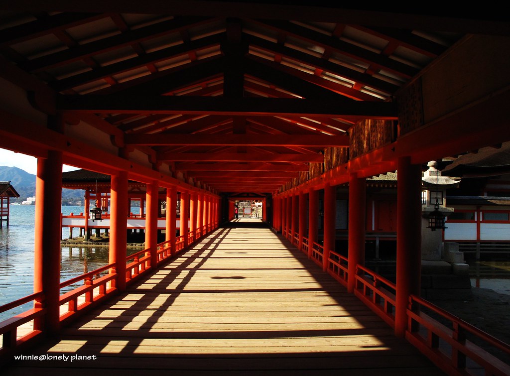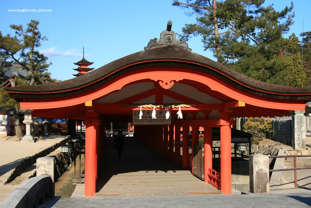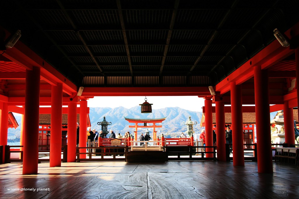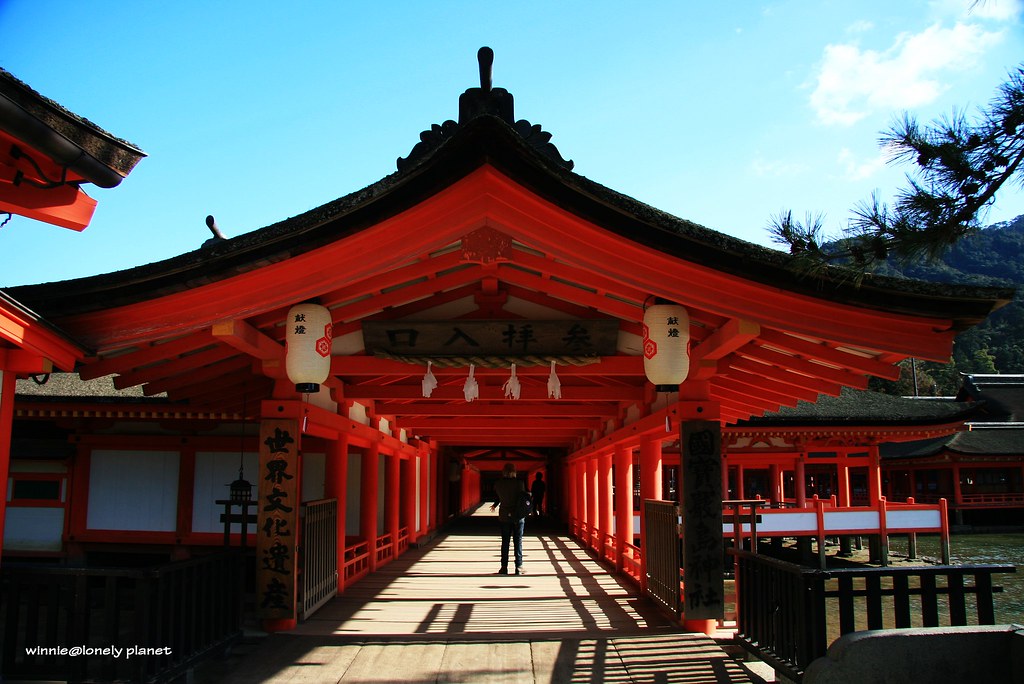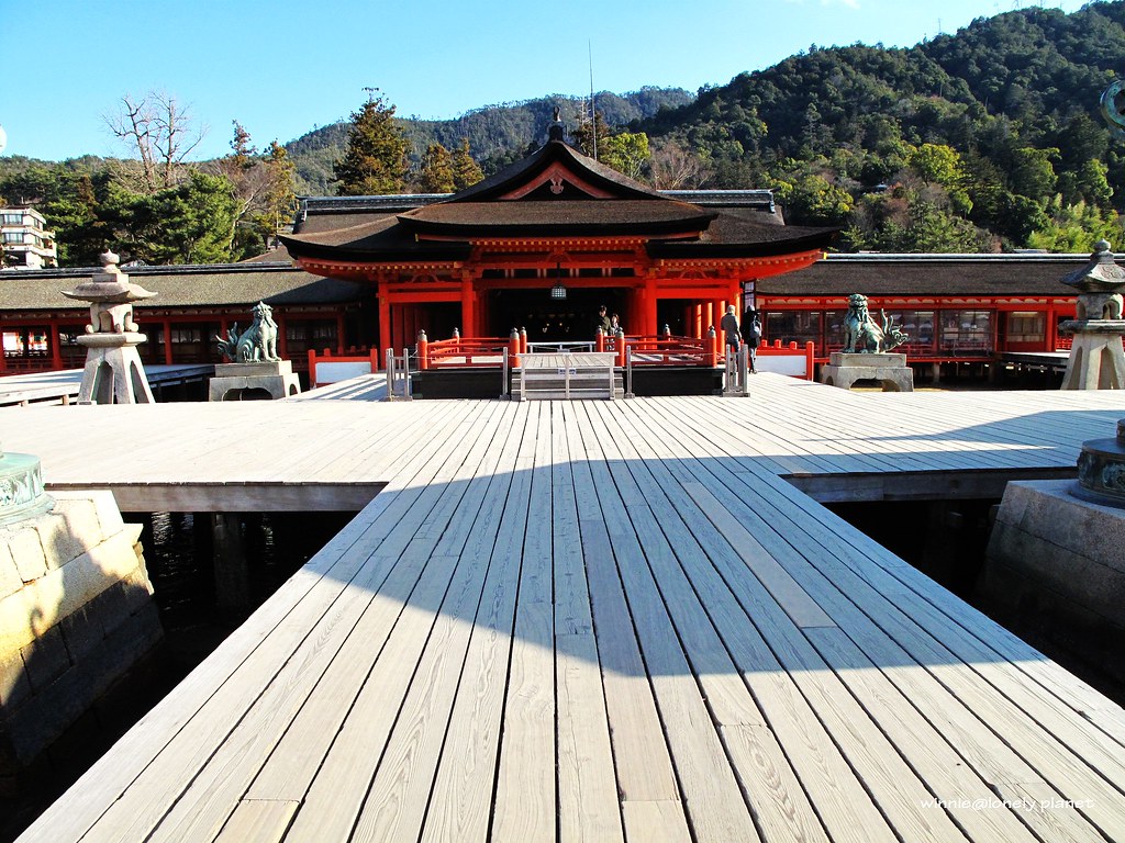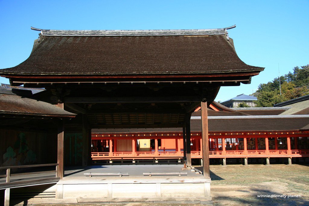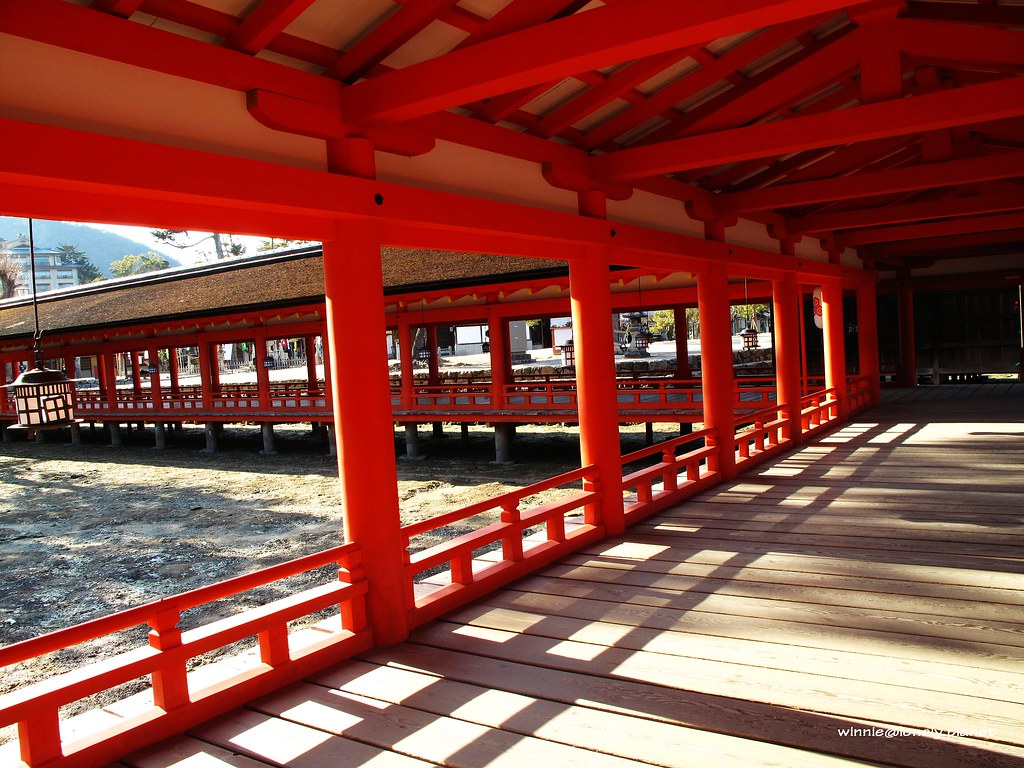 嚴島神社面積非常遼闊,一棟棟建築群之間以木造長迴廊相連,全長275公尺,寬4公尺