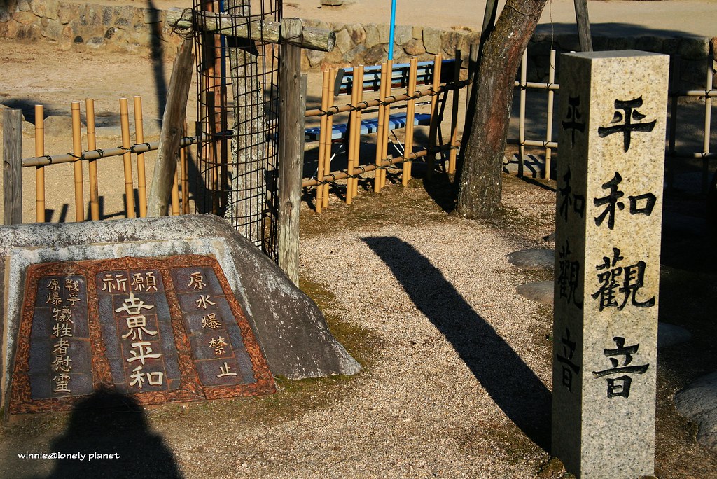 1945年原子彈轟炸廣島,這裡竟然僥倖躲過兵燹所以立了尊平和觀音像