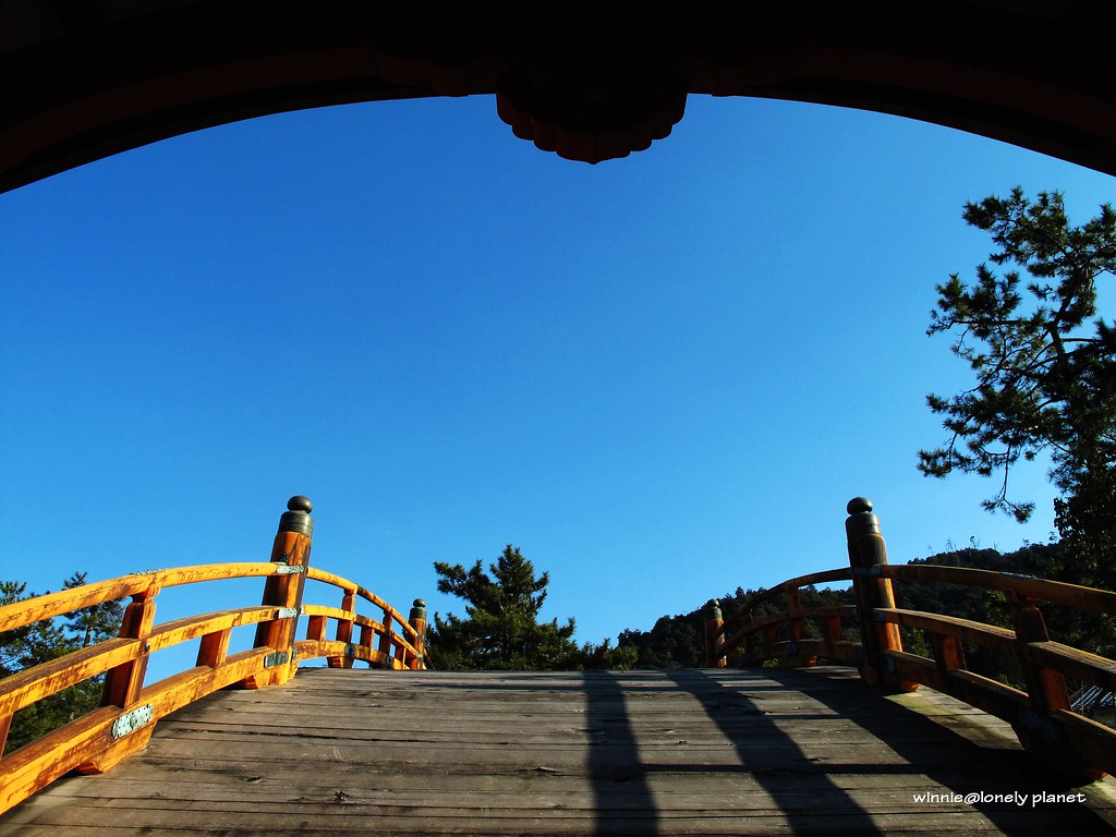 歲月悠悠,昔日英雄豪傑已經飛灰煙滅,徒留文字記載當年的豐功偉業。唯有朱紅色殿宇在碧海青天襯托下,依舊散發與平安朝那時一樣耀眼動人的光彩,隨著時光浸淫更添悠遠深沉風貌。
