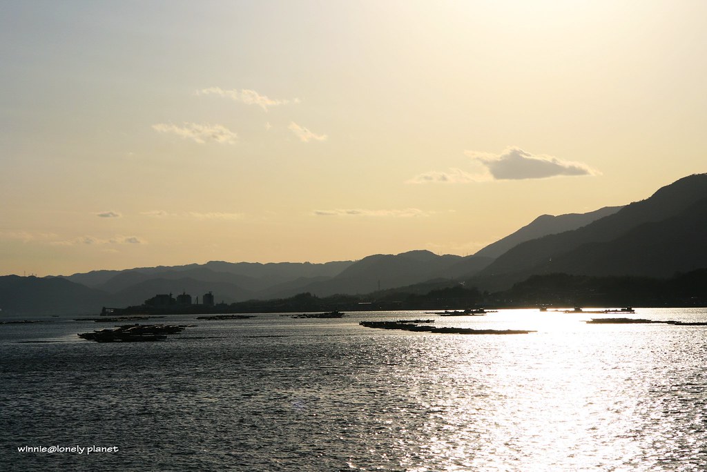 冬天的黃昏來得早,餘暉在瀨戶內海灑下粼粼金光