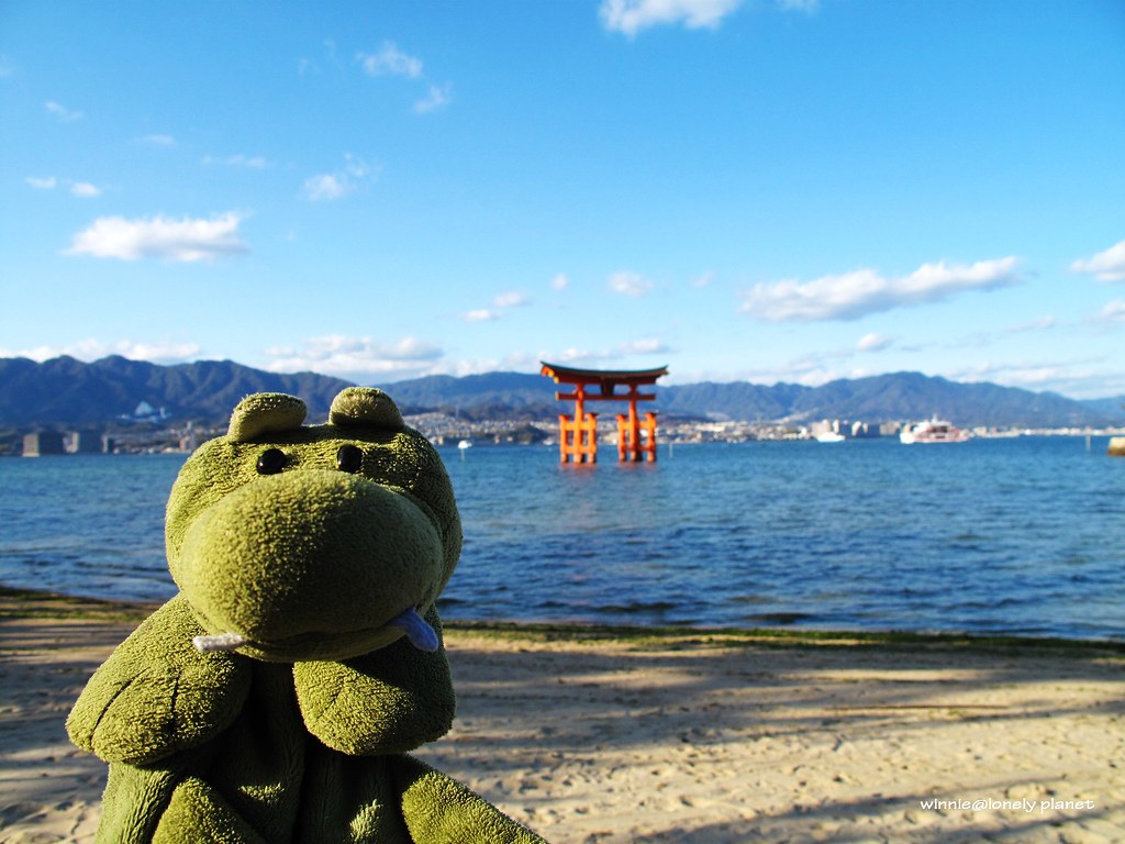 從 JR広島駅搭山陽本線約25分到JR宮島口駅下,走5分鐘到宮島口桟橋搭渡輪,約10分到宮島港。