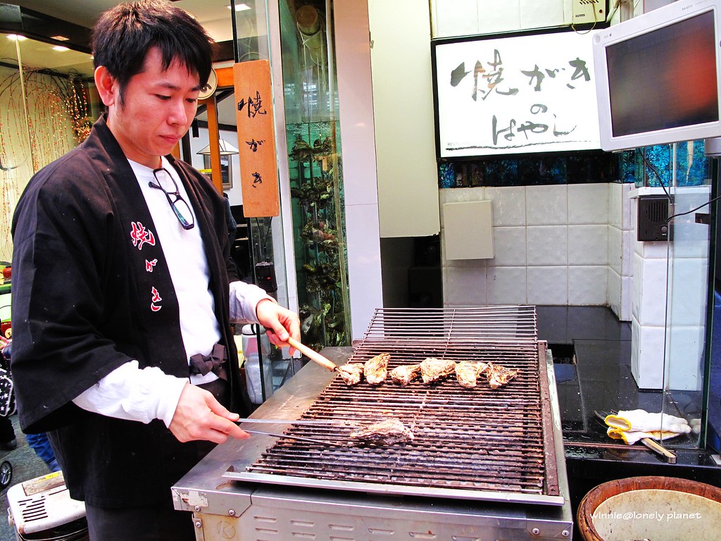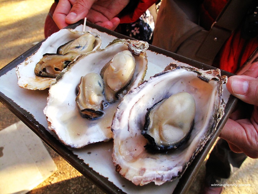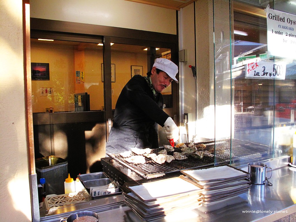 一走進宮島商店街,陣陣炭烤香迎面撲來,原來到處都在烤牡蠣啊。瀨戶內海氣候溫和風平浪靜,海水特別潔淨,具備優越養殖條件,據說大約在450年前室町時代就已經開始養殖牡蠣了,歷史相當悠久。搭渡船橫越瀨戶內海的時候,可以看到海面上飄浮著一排排蚵架,這些蚵架培育出來的牡蠣特別肥美,使廣島牡蠣產量位居日本第一。宮島每年還會在牡蠣最鮮美的季節─二月第二個周末舉辦牡蠣節(かき祭),讓遊客品嘗濱燒牡蠣、牡蠣廣島燒等牡蠣料理,還有牡蠣製品、牡蠣醬油特產品。
