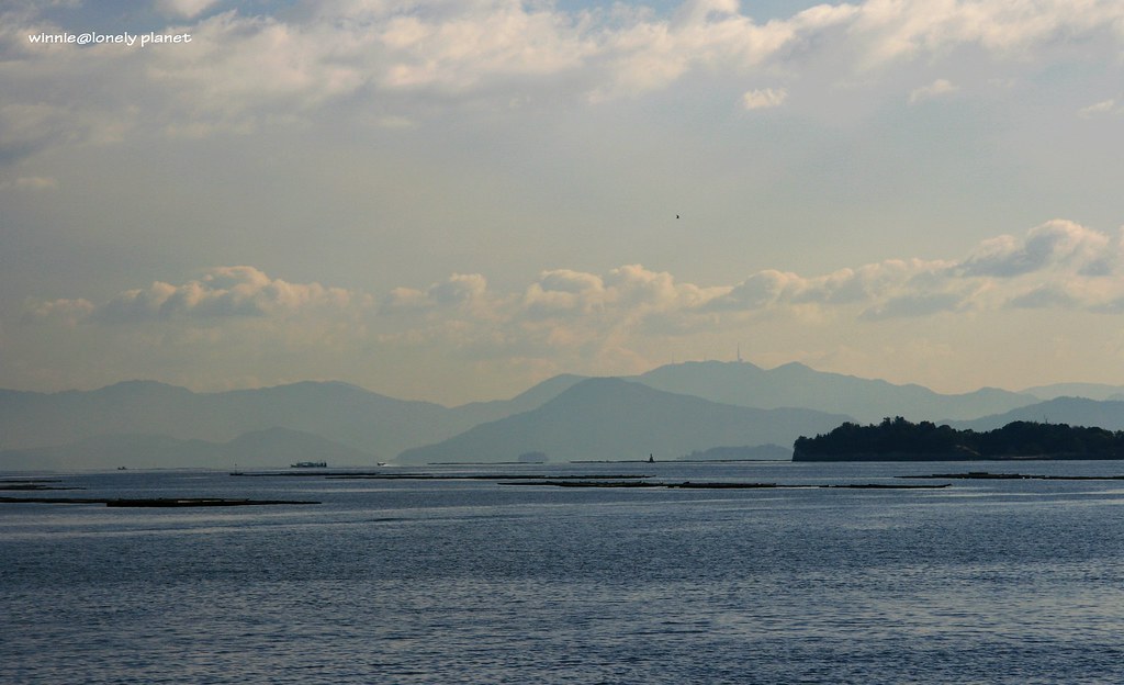 搭渡船橫越瀨戶內海的時候,可以看到海面上飄浮著一排排蚵架