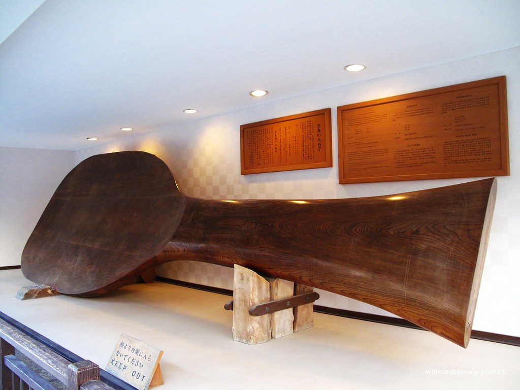 宮島商店街的巨大杓子,以270年樹齡的櫸木,花費2年10月才製作完成,長7.7公尺、寬2.7 公尺、重達2.5頓