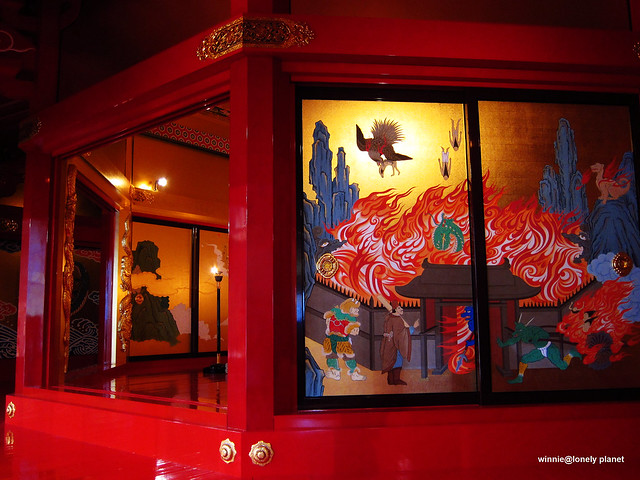 剖面可詳細觀看內部複雜結構,包括仿造狩野永徳的襖絵、天花板繪畫,維妙維肖極為精緻