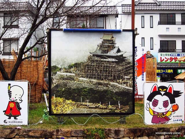 安土車站前還有電影「火天の城」的看板,這是2009年根據同名小說改編的電影,