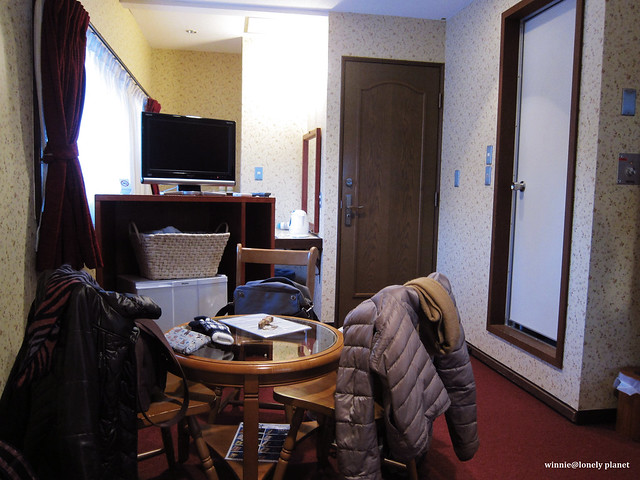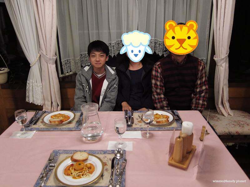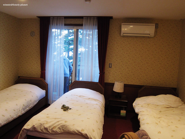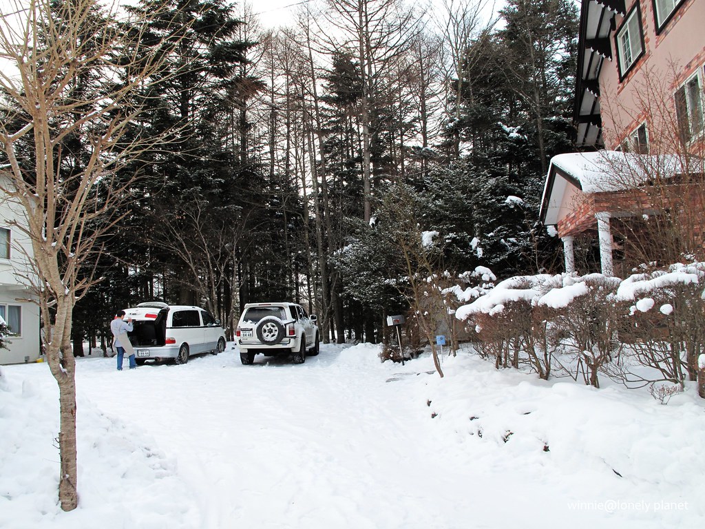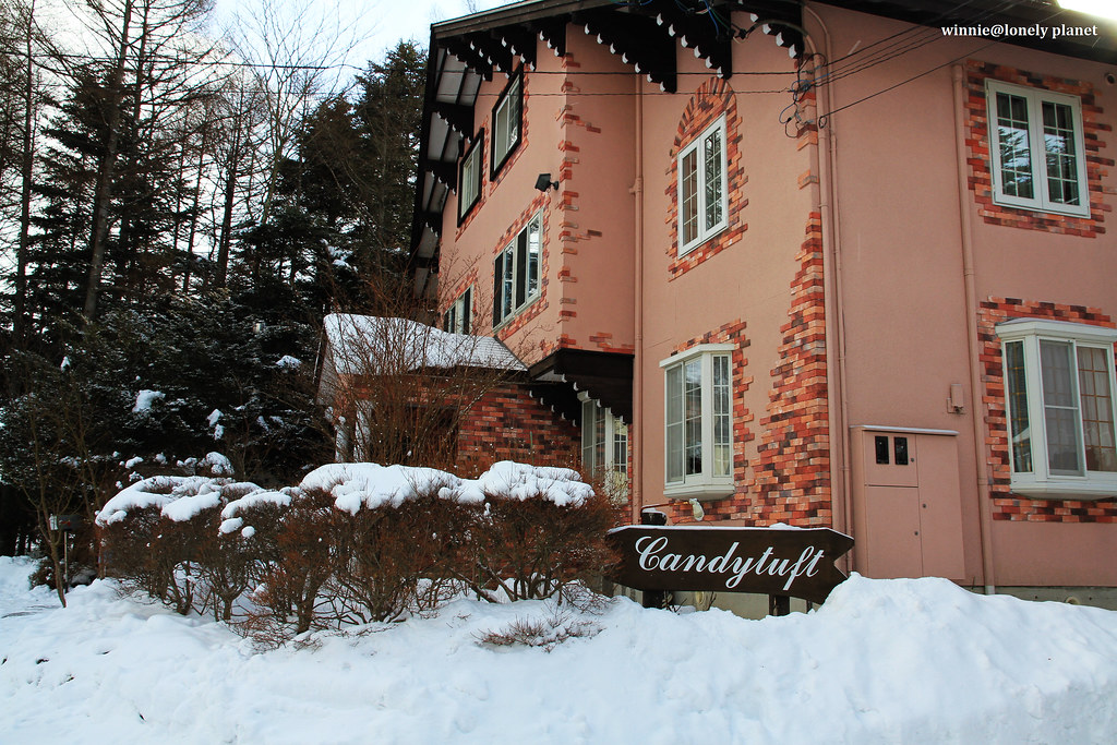 當初找民宿花了一番功夫,因為輕井澤太多可住的地方了,但是CP值高的離車站都有一段距離,而且不見得能接送,後來終於訂了網友和旅遊網站評價頗高的ペンションキャンディタフト(Pension Candytuft),國外旅客只能透過她的網站訂房,平日1泊2食一人¥10000。年輕的老闆和老闆娘笑容可掬,房間很舒適,料理也不錯,尤其房間地板可以加熱,即使晚上外面是零下八度,整間房內從上到下都相當溫暖,是我第一次遇到的貼心設備。還有麥飯石泉質的超大貸切風呂,寒冬泡湯是至高無上的享受,整體而言是很不錯的民宿,難怪這麼熱門。