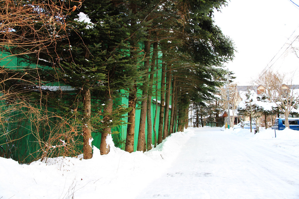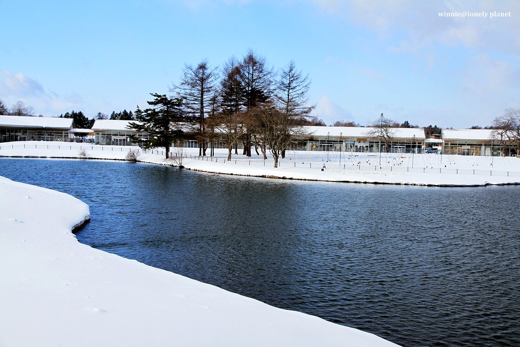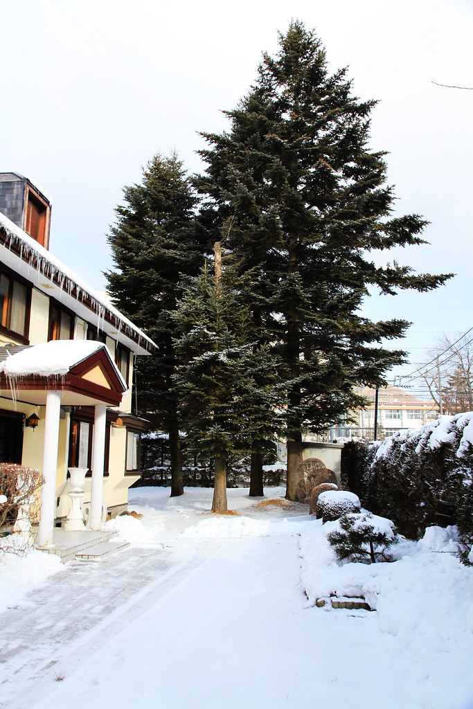 Prince Shopping Plaza規模相當大,品牌眾多,但是白雪覆蓋下的特殊建築造景所雕琢成的粉妝玉砌世界,比Outlet裡的商品更吸引我們。在這一帶閒逛兩個多小時,很快到了和民宿老闆約定的接駁時間,一輛白色休旅車已經在候車處等候。