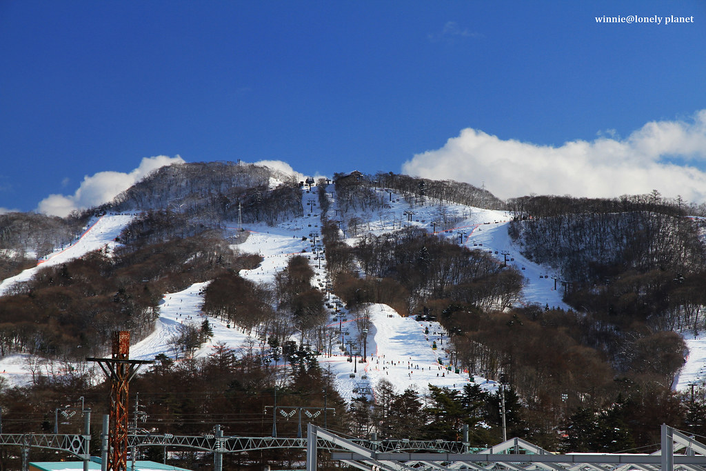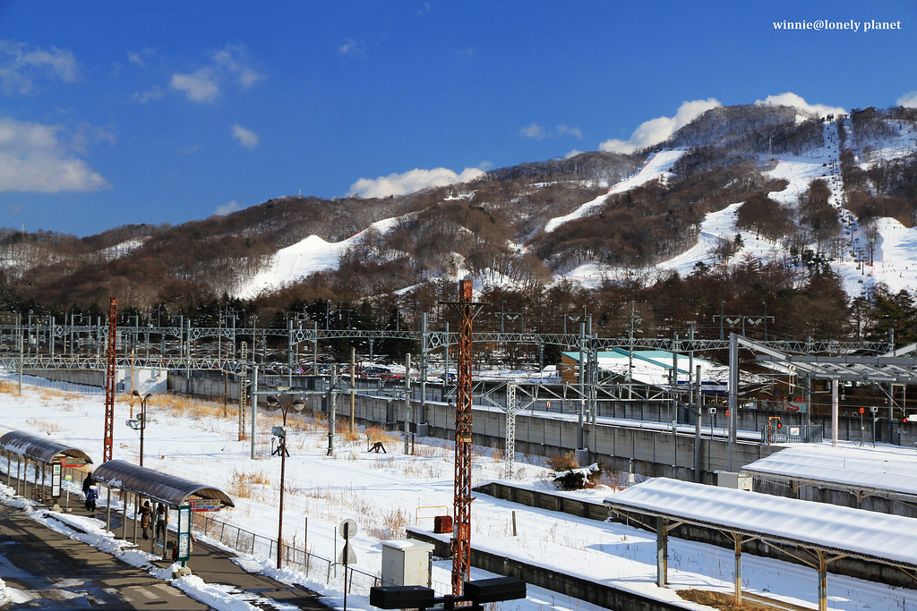輕井澤車站周遭一片雪白,照片右方山上一點點黑點是。。。