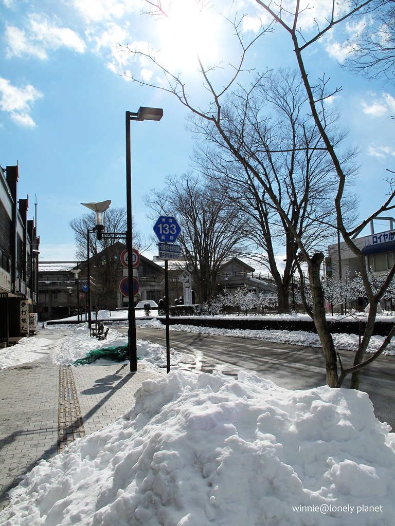 逛輕井澤以車站為分水嶺,出車站北口往北走約半小時是到舊輕井澤,這一帶有許多老字號店鋪。車站南口是輕井澤Prince Shopping Plaza,名牌Outlet遍布,血拼狂看了一定會尖叫。本來我們打算先到舊輕井澤晃晃,畢竟是輕井澤發祥地,但是在冷清的積雪大道走了10分鐘左右,實在快凍僵了,趕快躲進路邊一家中國餐廳來碗湯麵,雖然味道不怎麼樣,總算可以暖暖身子。麵店服務小姐來自哈爾濱會講中文,她說冬天的舊輕井澤沒甚麼好逛的,還不如去Shopping Mall。想想也有道哩,於是三人轉戰Prince Shopping Plaza。