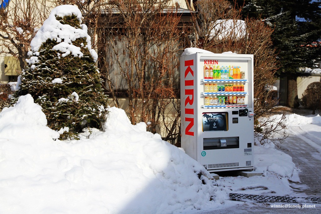 民宿前孤伶伶站著一台販賣機,在嚴冬也不會當機耶